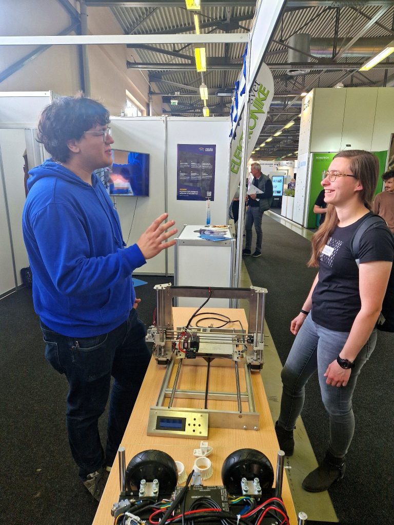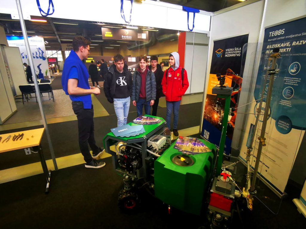 Na našem razstavnem prostoru smo predstavili naš študijski program, praktične projekte študentov (kolesa za rover na luni, 3D tisk, avtomatizacija) in povezovanje študija z industrijo.