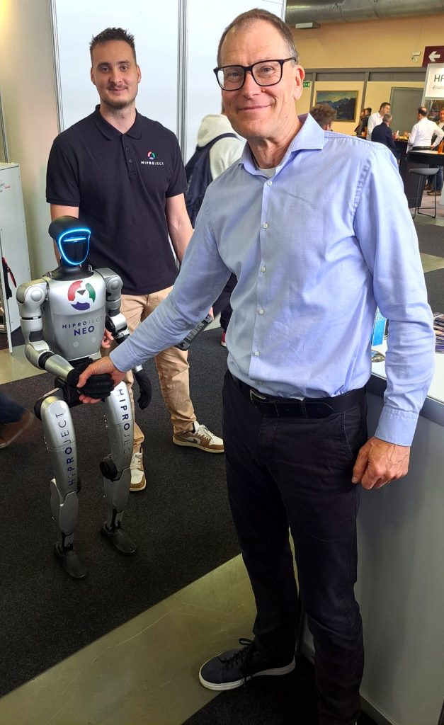 Posebno pozornost je pritegnil tudi naš dekan, ki je simbolično segel v roko robotu, s čimer smo poudarili pomen sodelovanja med človekom in tehnologijo.